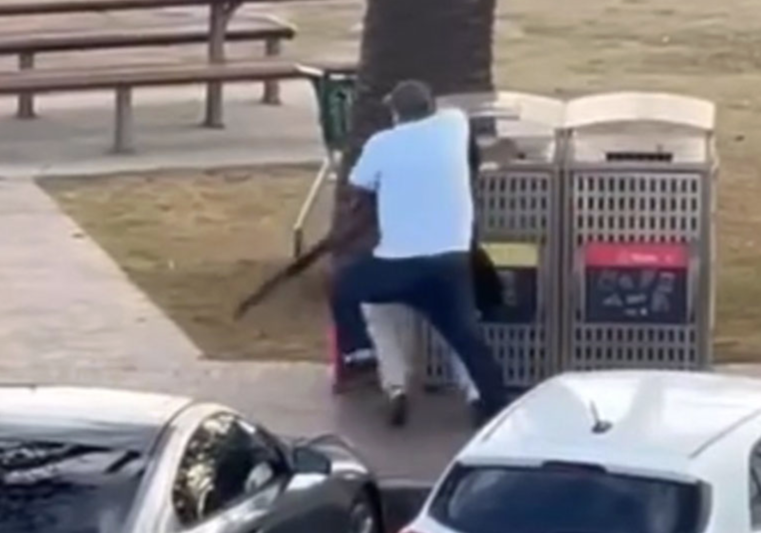 Smög upp bakom skytten Videomaterial från platsen visar hur Ahmed El Ahmad tar sig fram via parkeringen vid strandens norra del. Bakifrån lyckas han överraska en av gärningsmännen, brotta ner honom och ta ifrån honom geväret.