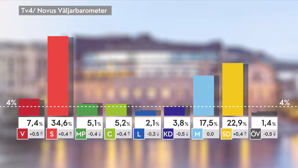 Mätningen visar dock förändringar inom felmarginalen. Det betyder att rörelserna är små – men riktningen är tydlig: regeringspartierna lyckas inte bryta ett mönster av stagnation.