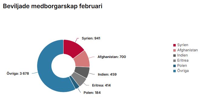 Trots löften om ett paradigmskifte i invandringspolitiken fortsätter antalet beviljade svenska medborgarskap att öka i rask takt. Under februari 2025 beviljades hela 6 460 nya medborgarskap enligt Migrationsverkets officiella statistik. Det är en ökning med 9,1 procent jämfört med januari, då 5 920 personer fick svenskt medborgarskap.