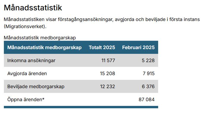 Sammanlagt har 12 232 nya medborgarskap beviljats under årets två första månader. Fortsätter denna takt kan Sverige förvänta sig att runt 70 000 personer blir svenska medborgare under 2025 – en siffra som knappast rimmar med Tidöpartiernas löften om en stramare invandringspolitik.