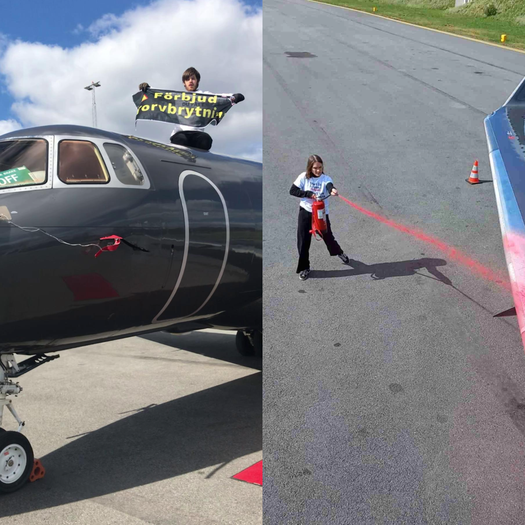 Aktivister sprayade ner och limmade fast sig på flygplan på Bromma Under fredagen slog aktivister från den radikala miljöorganisationen Återställ Våtmarker till mot ett privatjet på Bromma flygplats. Två personer, en kvinna på 30 år och en man på 24 år, tog sig in på området, sprayade färg på flygplanet och klättrade upp för att limma fast sig själva.